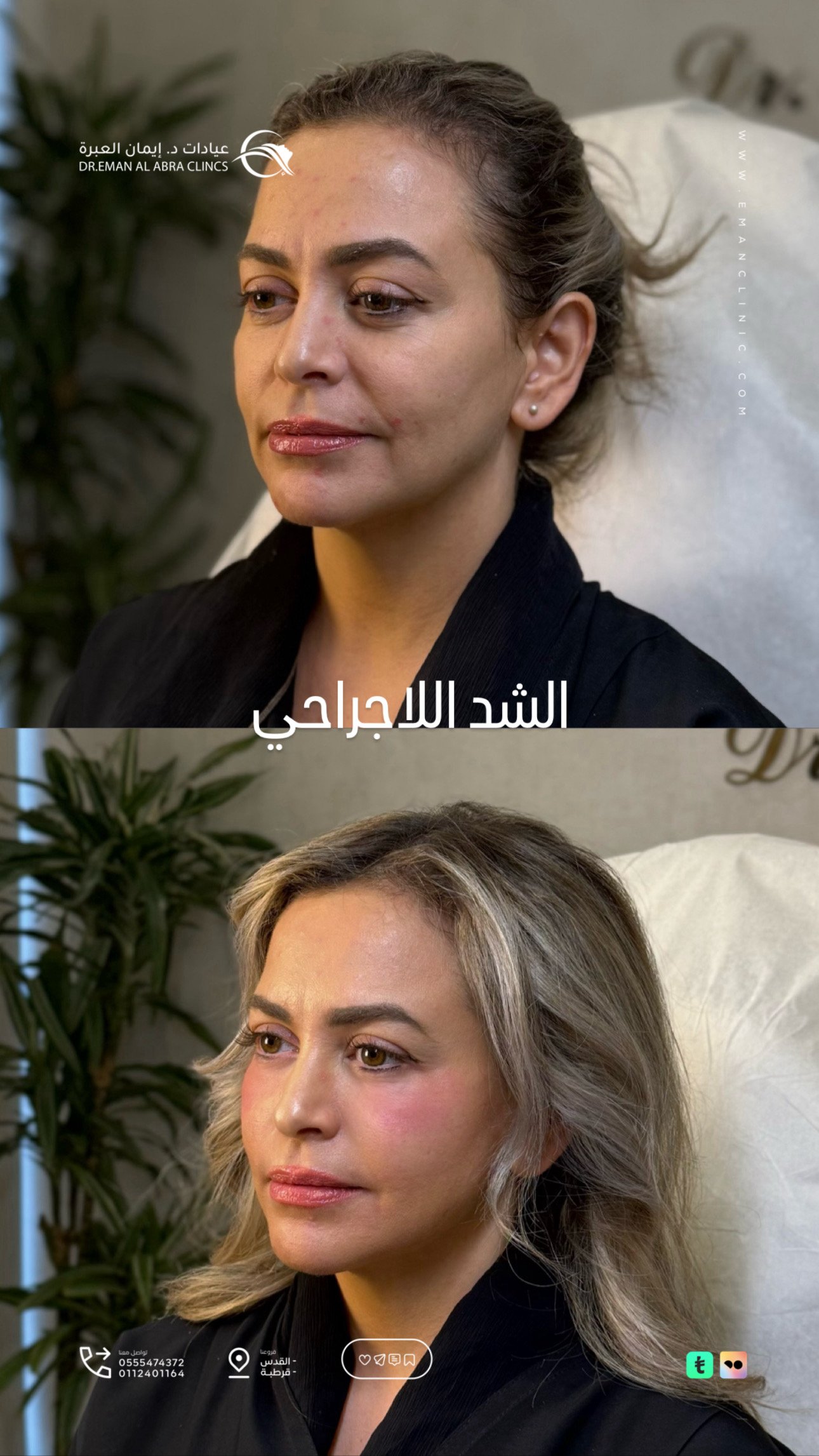 علاج مشاكل الشعر و البشره ، شد الغير جراحي ، حقن الفيلر و البوتكس و ابر النضاره ، احدث اجهزه علاج البشره ( مورفيوس ، سيكرت، الثيرا ، فراكشينال ، ديرمابن)